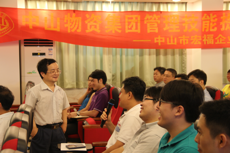 中山市宏福企業(yè)管理有限公司王國玉董事長和學(xué)員互動(dòng),提高學(xué)員課程參與感。